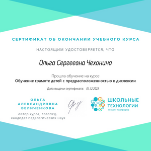 В настоящее время с огромным интересом слушаю вебинары профессионалов логопедического круга и прохожу курсы повышения квалификации.